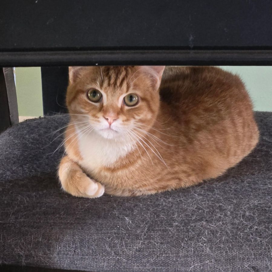 Carrot is a sweet 7-month-old male orange tabby who came to us after being found in a garage. He is a quiet personality – timid at first but warms up when you bring out the cat treats. He would enjoy the company of another cat in his forever home.