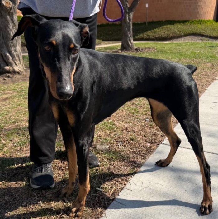 Meet Bella, a 4-year-old female Doberman who recently came to us from CACC after being surrendered due to housing restrictions.