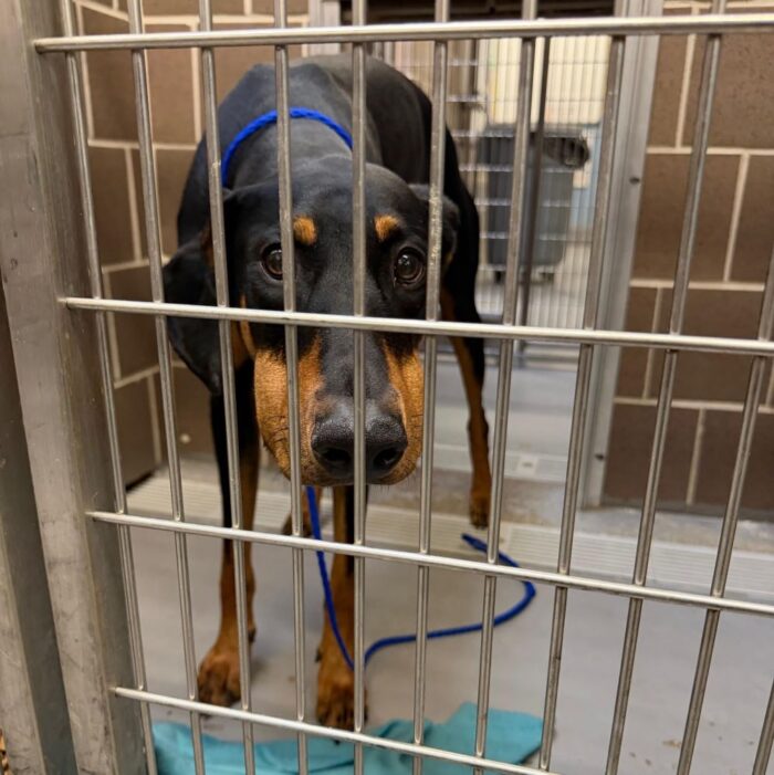 This sweet male Doberman came to us from Chicago Animal Care & Control after being found stray. He needs a foster home so we can get to know him.