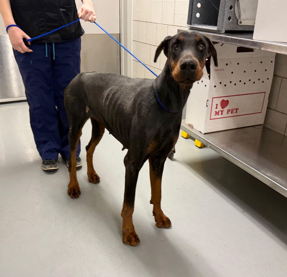 Keena is a very pretty black and rust female who came to us after being surrendered to a local shelter. She arrived to us in rough shape but she’s in good hands now. She is a cropped female but her ears were not posted so the flop over. She is ready to leave her past behind her and find a loving family. Please let us know if you can foster or would like to adopt Keena.